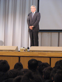 - a folded up note, which read on the outside "open" in japanese, and on the inside "goodbye!" in katakana, given by a third grade boy, who slyly gave it to me as he was shaking my hand, and followed it up by pounding me (probably accidental, but still cool)